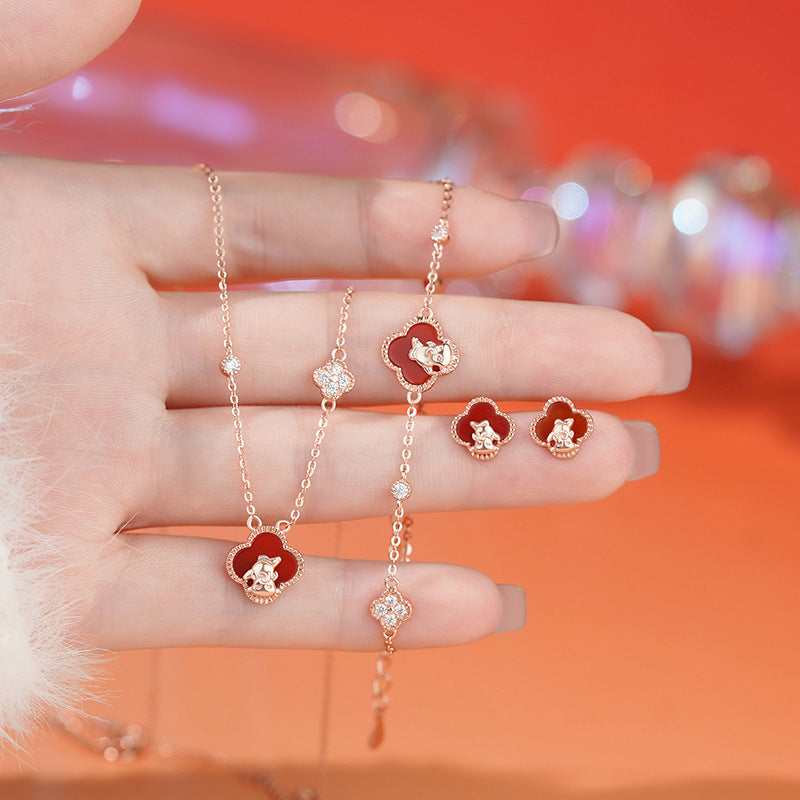 D廠【YC4477SL】純銀S925紅瑪瑙花朵手鍊復古個性簡約設計感時尚百搭精緻手飾 26.01-1