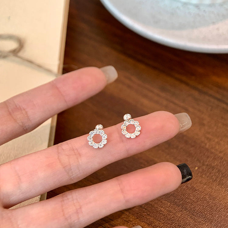F廠【XDQ11045E】S999純銀韓版簡約圓環鑲鑽耳環女高級感精緻幾何螺絲轉扣耳飾 25.11-2