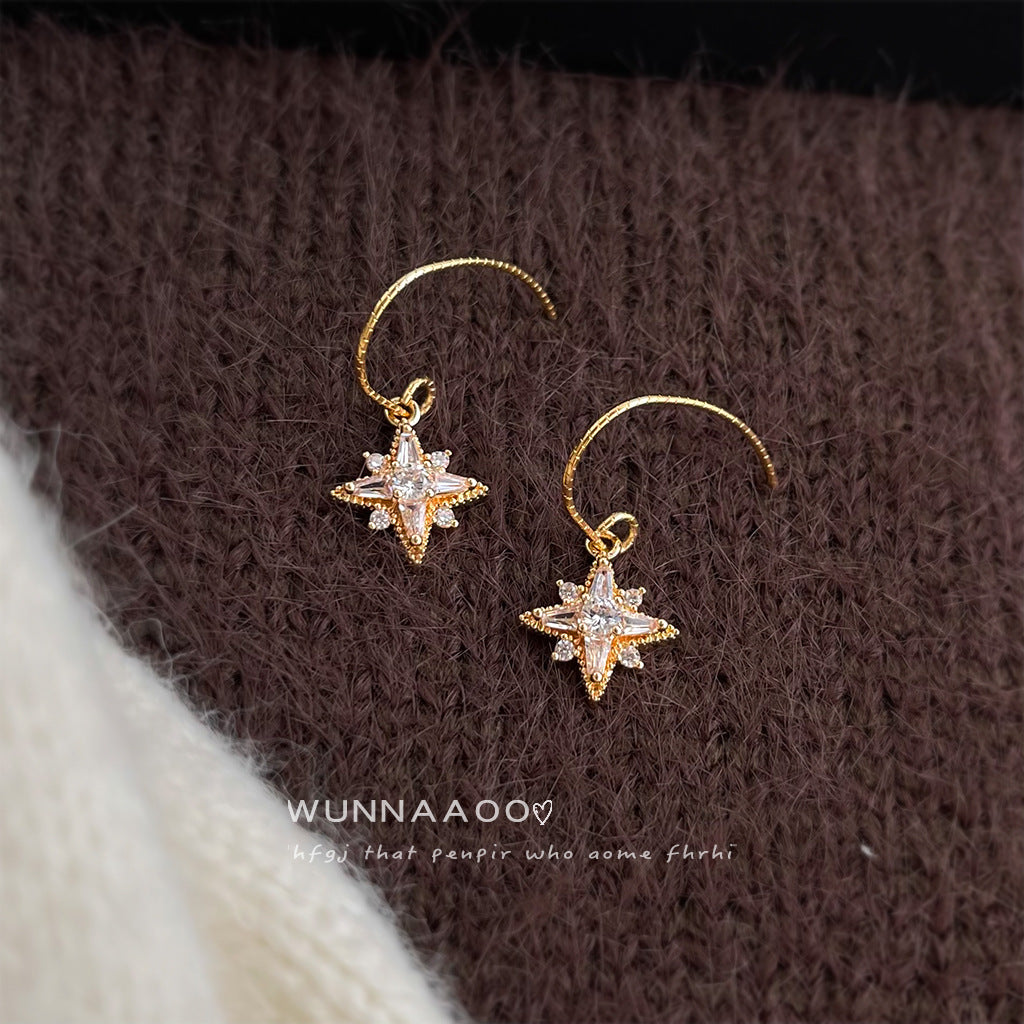 F廠【XDQ11287E】S999純銀小眾精緻四芒星耳環女個性簡約鋯石星芒時尚百搭耳飾 25.11-2