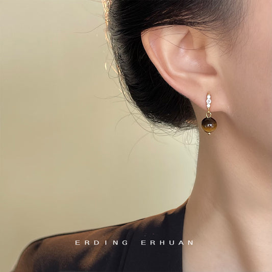 C廠【6850】文藝復古微鑲鋯石美拉德風鑲嵌虎眼石幾何方形高級感新款耳環耳環 25.09-4