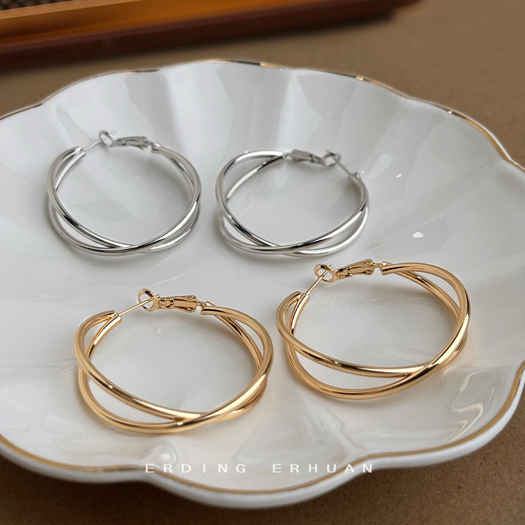 A廠【7323】時尚高級感重工質感銀針微鑲鋯石雙層立體幾何鏤空耳飾耳環女 26.01-2