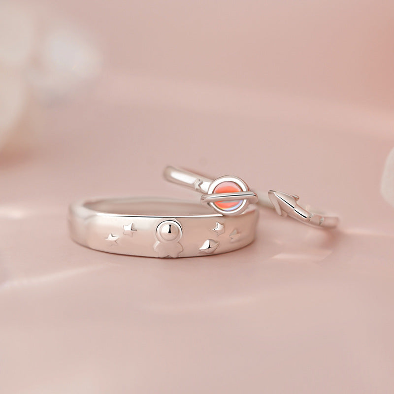 E廠【YC4064R】S999足銀可愛太空人情侶對戒卡通小眾清新簡約個性戒指 25.07-2