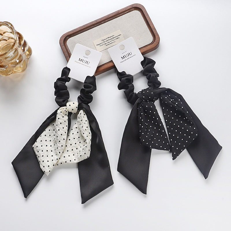 D廠【B489】韓版燕尾飄帶髮圈卡裝高級感大腸圈髮繩時尚波點髮飾皮筋馬尾頭繩 25.11-1「D廠-單筆結帳需滿,NT$600出貨(不含運費)」
