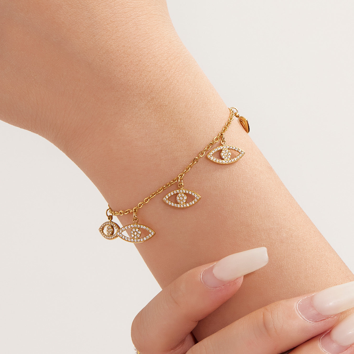 B廠【Z211】不鏽鋼超閃5A鋯石幾何NK鏈開口手鐲誇張輕奢風組合手環鍍18k真金 26.01-1