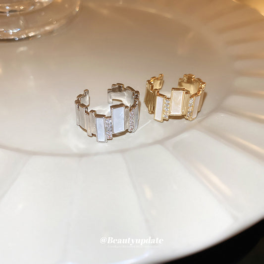 A廠【HR1876】真金電鍍不規則鋯石開口戒指幾何設計小眾食指戒百搭冷淡風手飾女 24.01-4