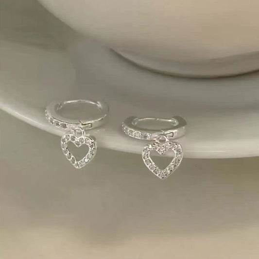 E廠【YC9962E】S925純銀法式鑲鑽愛心耳環女復古簡約溫柔風耳環耳圈耳飾 24.02-1