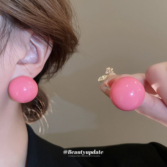 A廠【HE7812】銀針糖果色球耳環歐美簡約氣質質感通勤耳環百搭時尚高級感耳飾 24.02-4