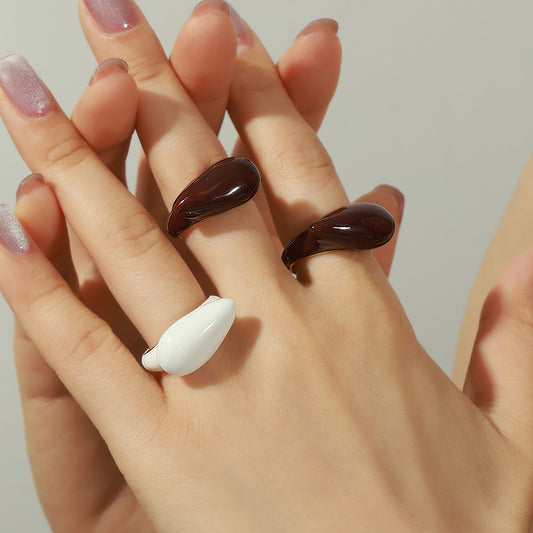 B廠【A664】歐美滴油水滴開口戒指女小眾設計高級感食指戒指環銅鍍金手飾 24.02-4