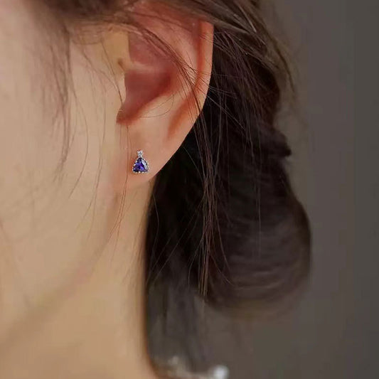 E廠【YC9965E】S925純銀迷你三角鋯石耳環女精緻閃亮小巧精緻輕奢耳飾品 24.02-3