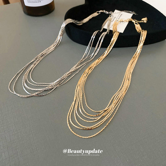 A廠【HN5516】真金電鍍金屬多層項鍊歐美個性冷淡風鎖骨鏈小眾簡約百搭頸鍊 24.03-4