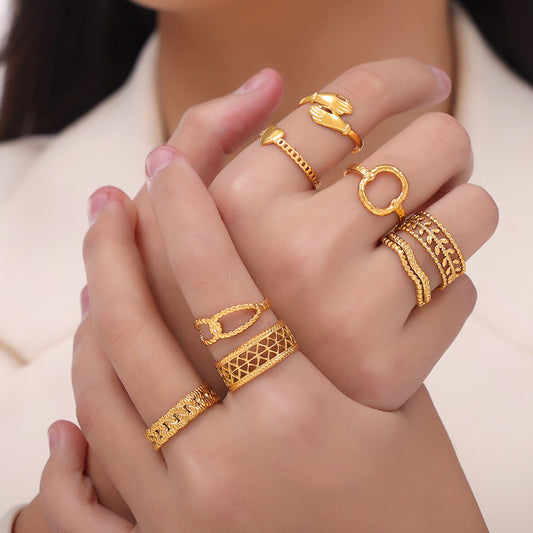 B廠【A016-23】新款跨國誇張小眾設計個性ins風簡約鈦鋼鍍金開口戒指飾品 24.03-3