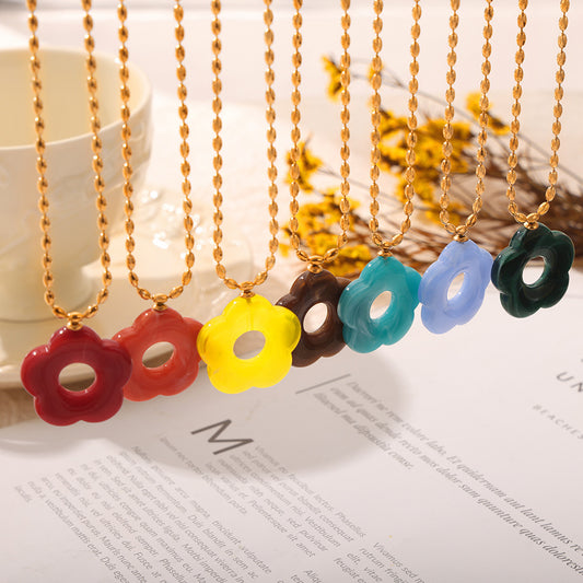 B廠【P103-F107】日韓新款小清新簡約甜美時尚鈦鋼鍍金鏈條花朵樹脂吊墜項鍊飾品女 24.03-3
