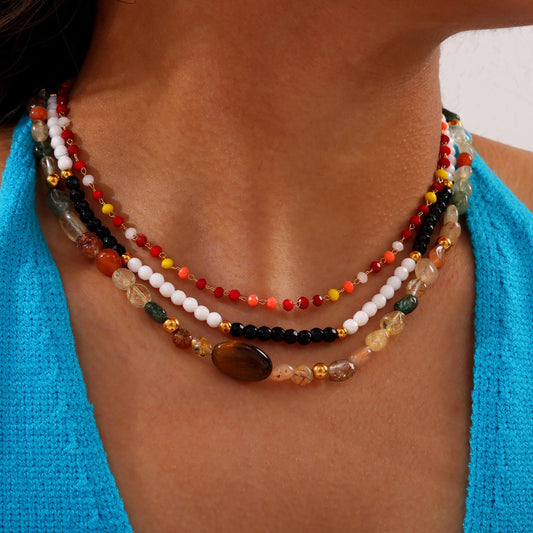 B廠【P033-35】法式新款時尚復古輕奢天然石瑪瑙吊墜不規則手工串珠鈦鋼鍍金項鍊 24.03-3