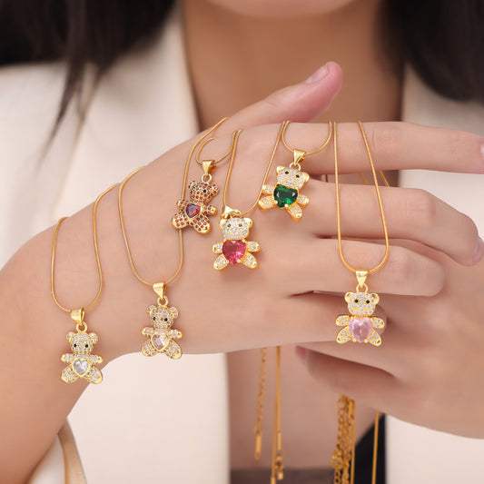 B廠【P011-12】日韓跨國新款可愛卡通銅材質小熊吊墜鑲鑽輕奢項鍊時尚輕奢飾品女 24.03-3