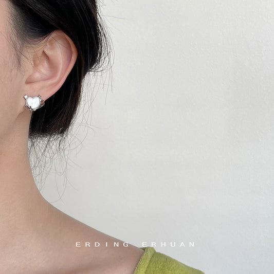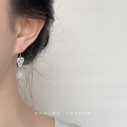 C廠【3834】法式復古手工設計感優雅氣質新潮小眾設計師微鑲鋯石白玉耳飾耳環 24.04-2