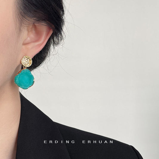 C廠【3872】海水綠~原始設計夏季新款不規則高級感鍍14K幾何耳環耳環 24.04-2