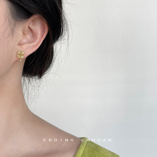 C廠【3849】迷你版~森系小清新四葉花輕奢風甜美通勤新潮鍍14K銀針耳環女耳飾 24.04-2