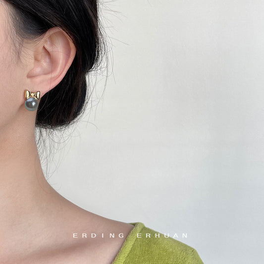 C廠【3847-3848】施家質感玻璃珍珠蝴蝶結高級感輕奢風時尚潮新耳飾鍍14K耳環 24.04-2