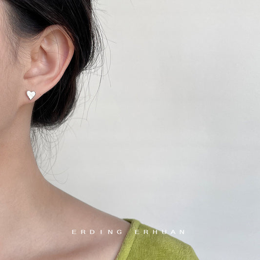 C廠【3862】極簡主義不對稱迷你版小巧簡約愛心銀針氣質百搭通勤耳飾 24.04-2