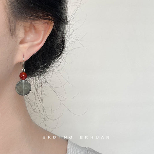 C廠【3896】復古宮廷新中式綠瑪瑙設計感文藝銀針耳環氣質優雅耳飾飾品女 24.04-2