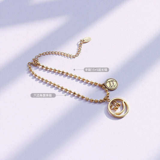 B廠【E523】歐美嘻哈笑臉米珠幸運good luck手鍊手飾女ins小眾百搭鈦鋼飾品 24.04-4