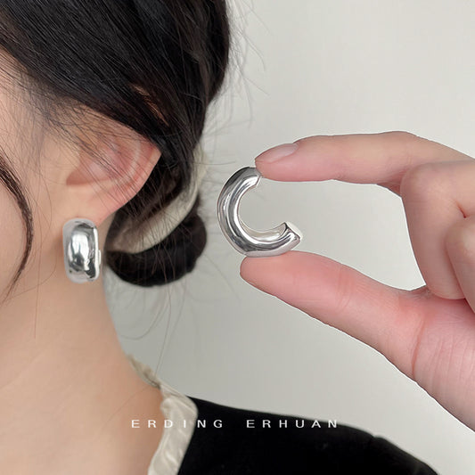 C廠【4041】時尚通勤光面重工質感簡約幾何圓形銀針耳飾女2024年新款耳環 24.05-4
