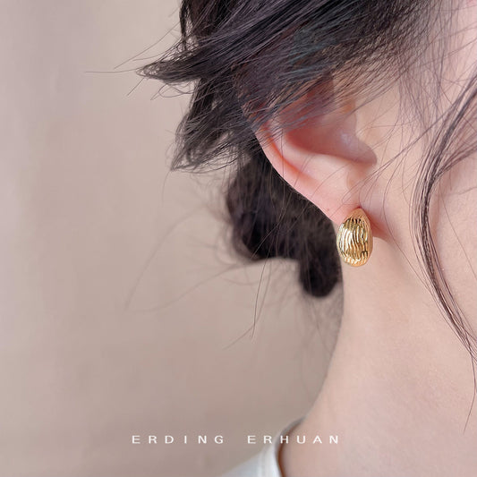 C廠【4087】時尚通勤紋理感簡約高級感電鍍14K銀針耳環 24.05-4