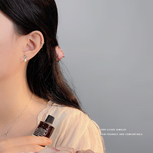 E廠【YC10139E】S999足銀甜酷鋯石星星珍珠耳環女款精緻耳環小巧個性耳飾 24.05-4