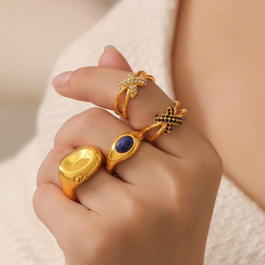 B廠【A611-3】歐美跨境熱賣微鑲鑽X造型戒指鈦鋼鍍18K金時尚簡約輕奢指環飾品女 24.05-1