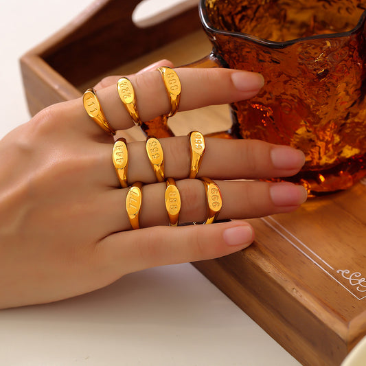 B廠【A812】歐美ins時尚個性簡約指環飾品鈦鋼鍍18K金橢圓數字金色戒指女飾品 24.05-1