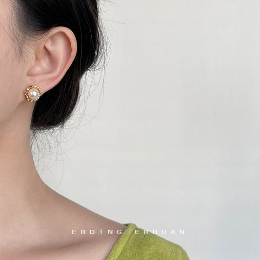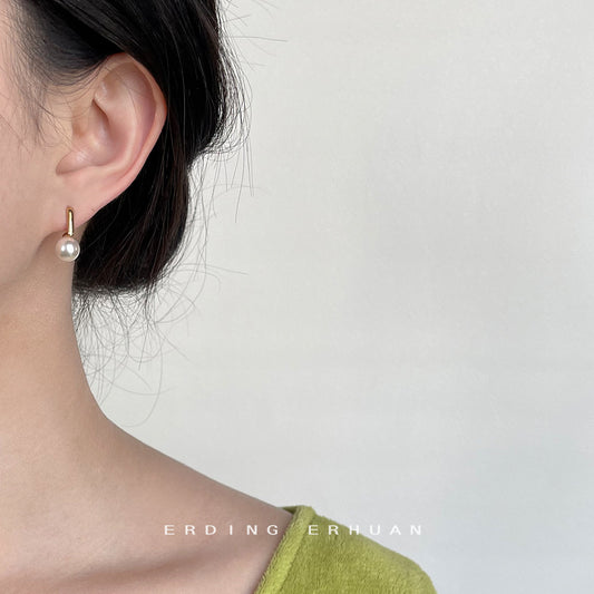 C廠【3964】棉花珍珠~輕奢風高級感電鍍14K設計師款簡約氣質銀針耳飾 24.05-1