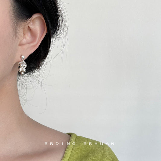 C廠【3867】法式輕奢風質感重工實心葡萄串銀色氣質優雅銀針耳飾 24.05-1