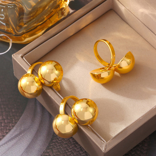B廠【A248】跨國歐美風金色圓形菱面戒指誇張開口設計銅材質鍍18k金潮流飾品 24.07-5