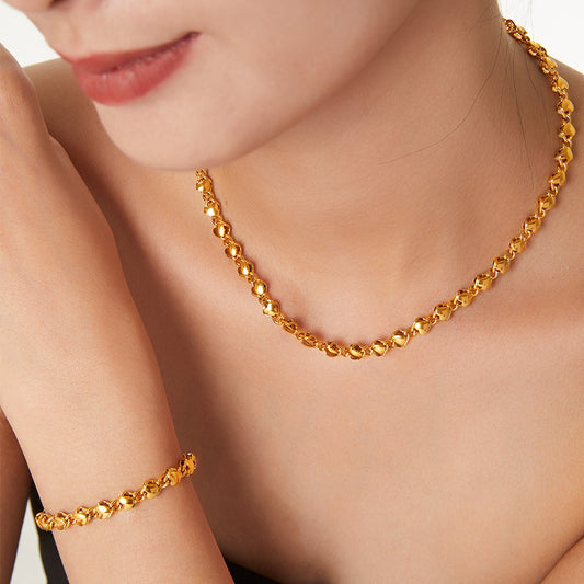B廠【P058】歐美ins風18k鍍金空心愛心編織手鍊項鍊跨境銅材質不掉色簡約套裝 24.07-5