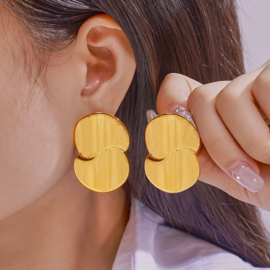B廠【F011】韓國版新款氣質幾何鈦鋼鍍18k金耳環冷淡風C型光面簡約小眾百搭耳飾 24.07-1