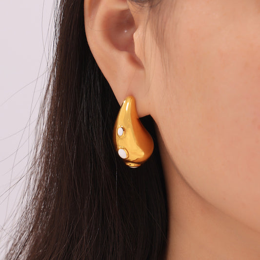 B廠【F145】歐美跨境時尚鈦鋼滴油水滴耳環ins風小眾設計感空心保色耳環飾品 24.07-1
