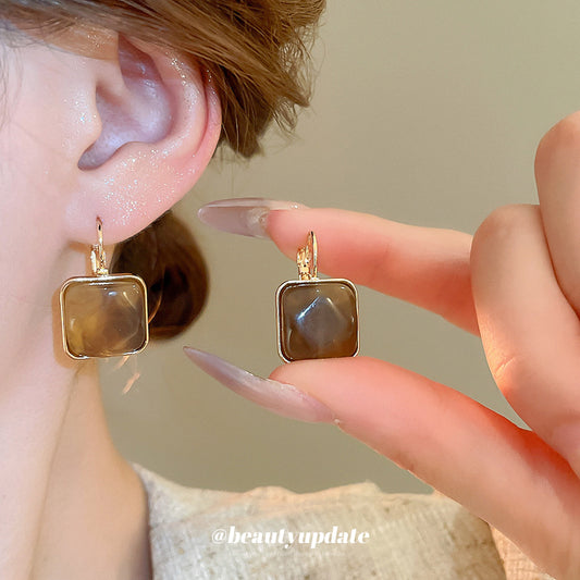 A廠【HE22002】美拉德港風簡約設計漸層方形耳扣氣質時尚耳環復古輕奢高級感耳飾 24.08-3
