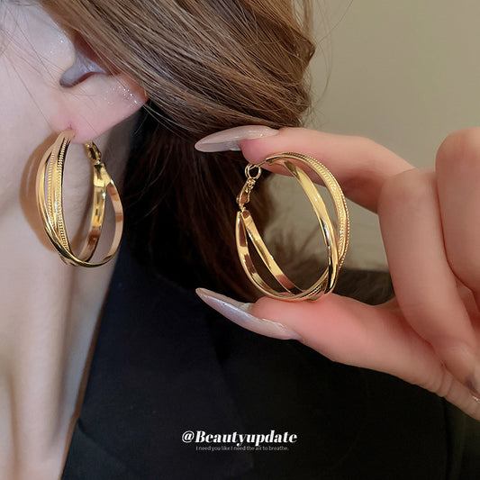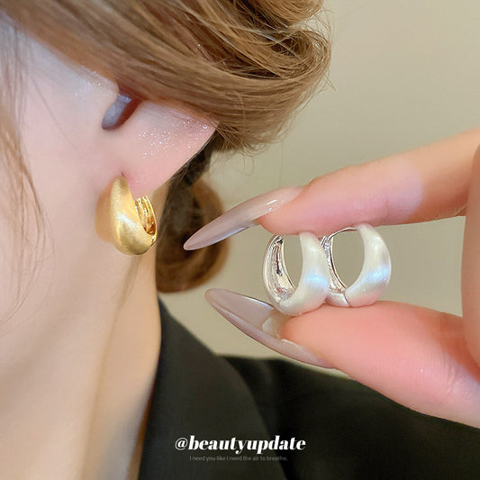 A廠【HE21972】歐美跨國素圈霧面拉絲扣新款時尚百搭耳環簡約氣質高級感耳飾女 24.08-3