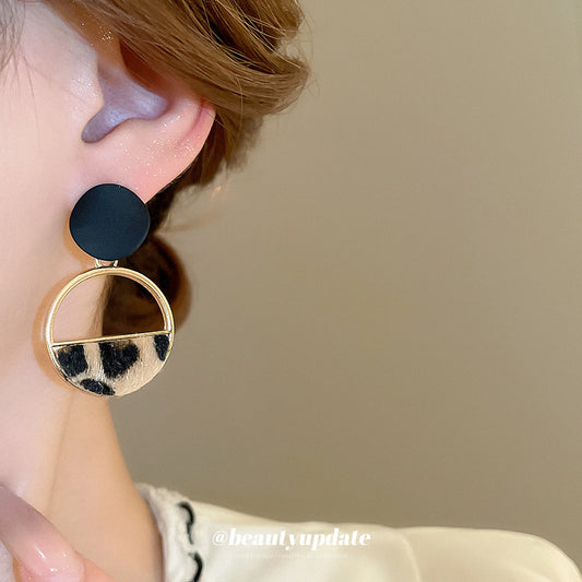 A廠【HE21985】復古布藝豹紋幾何耳環跨國新款個性設計耳墜歐美時尚高級感耳飾女 24.08-3