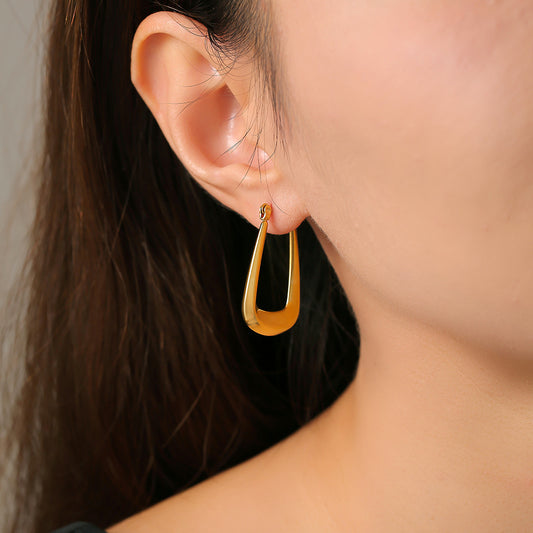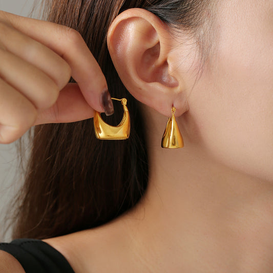 B廠【F1606】INS時尚女式空心質感U型耳環幾何形鈦鋼PVD18K金鏤空歐美風耳飾品 24.08-5