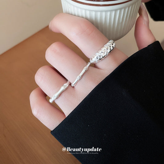 A廠【HR2230】新中式鑲鑽竹節開口戒指小眾簡約設計感指環時尚百搭高級感手飾女 24.08-5
