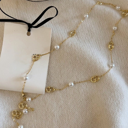 A廠【WN051】真金電鍍人造珍珠款豬鼻項鍊氛圍感鎖骨鍊新款輕奢小眾氣質飾品女 24.08-5
