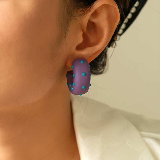 B廠【F1574】歐美ins風環保樹脂滴膠斑點C型耳環潮流田園風不鏽鋼耳環飾品 24.08-5