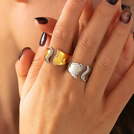 B廠【A895】INS風鑲嵌鑽不規則形開口戒指18k金不銹鋼中性冷淡風不可調整戒指 24.08-5