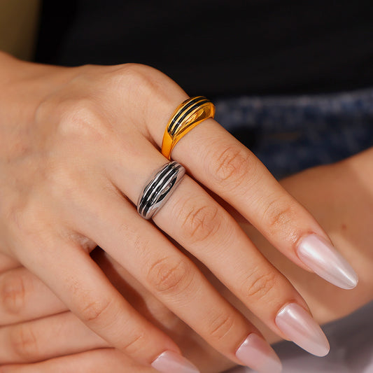 B廠【A326】跨國熱銷飾品時尚復古鈦鋼雙排滴油指環簡約百搭設計情侶戒指 24.08-2