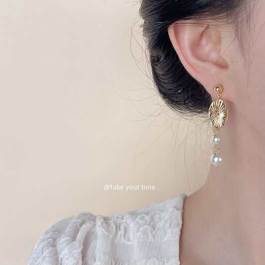 C廠【4781】馬貝珍珠質感橢圓鏤空幾何鍍14K高級感輕奢風簡約通勤耳環女耳飾 24.08-5