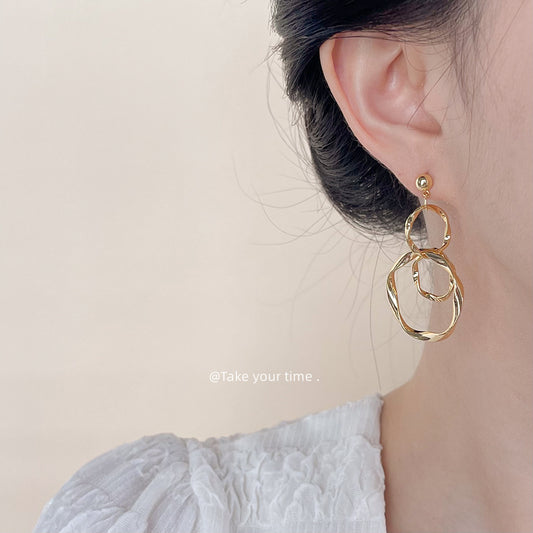 C廠【4768】文藝復古誇張設計師款大耳環高級感霧面電鍍新款耳飾飾品 24.08-5
