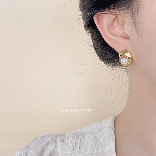 C廠【4748】玻璃施家珍珠鍍14K高級感輕奢風一款兩戴海貝造型耳環女簡約耳飾 24.08-5