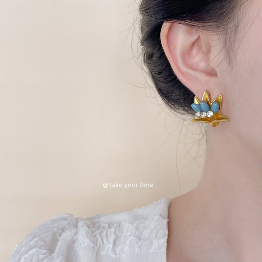 C廠【4787】文藝復古中古風電鍍霧面質感立體花朵耳飾女設計師款耳環耳環 24.09-1