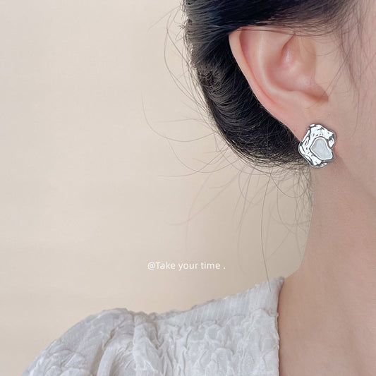 C廠【4804】鮑魚貝法式文藝復古鍍14K簡約不規則愛心耳環 氣質高級感耳飾 24.09-3